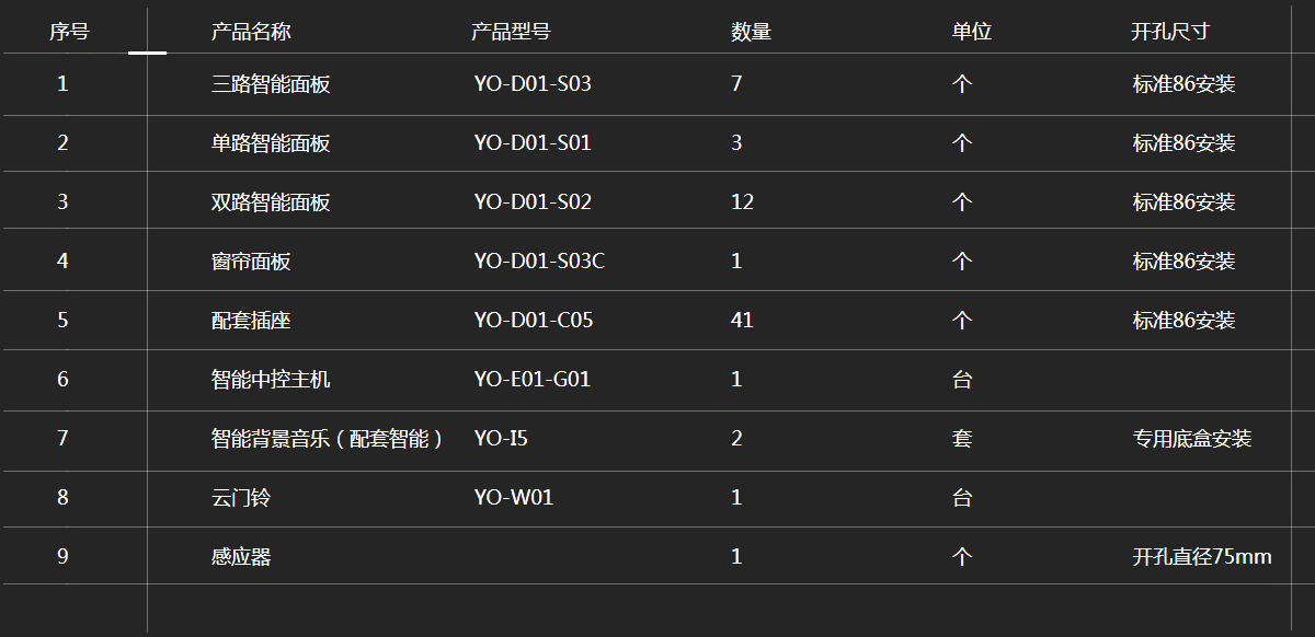 可對全屋燈光進行智能控制與管理,包括智能開關、一鍵場景、燈帶RGB調色。可全屋窗簾進行自動開、關、停控制(衛生間除外)。各房間配比智能插座共41個,實現智能控制可視音樂云門鈴,自定義門鈴音樂。客廳、主臥、2個小孩房、父母房、書房實現高品質背景音樂享受,私享影院高級音效。一樓入戶門廳、樓梯間、衛生間、衣帽音區域智能燈光人體感應|悠達APP及背景音樂控制面板管理全屋悠達智能設備。