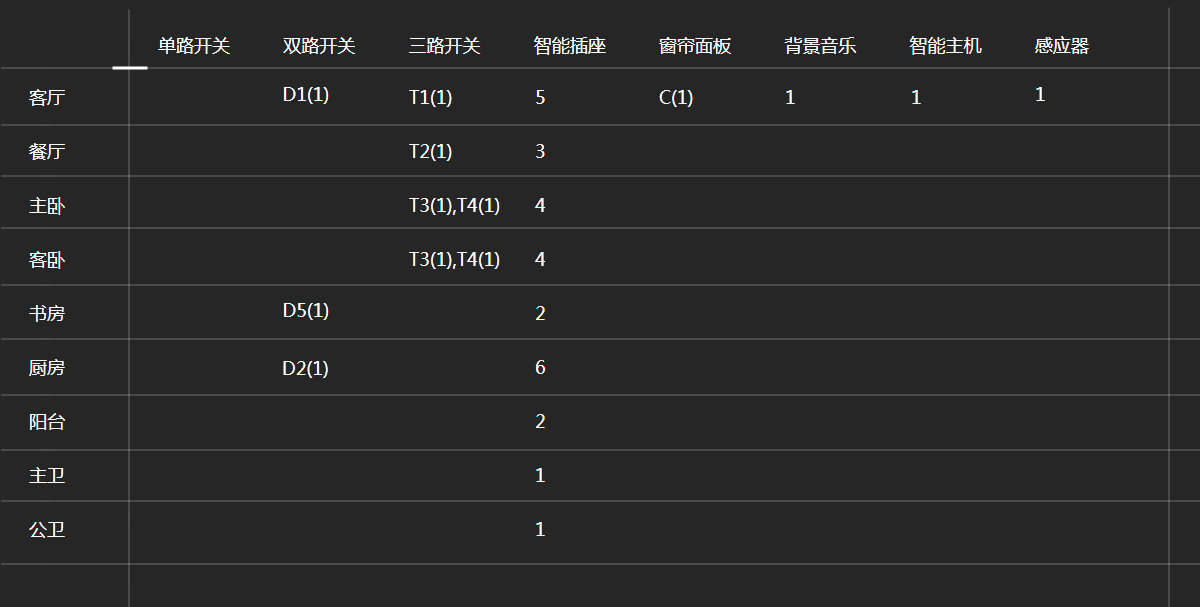 可對全屋燈光進行智能控制與管理,包括智能開關、一鍵場景、燈帶RGB調色。悠達APP及背景音樂控制面板管理全屋悠達智能設備。客廳實現高品質背景音樂享受客廳入戶 走廊智能燈光人體感應各房間配比智能插座共28個,實現智能開關。可對客廳、主臥的窗簾進行自動開、關停控制。
