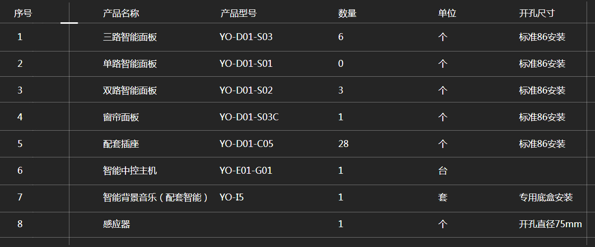 悠達智能產品配置清單