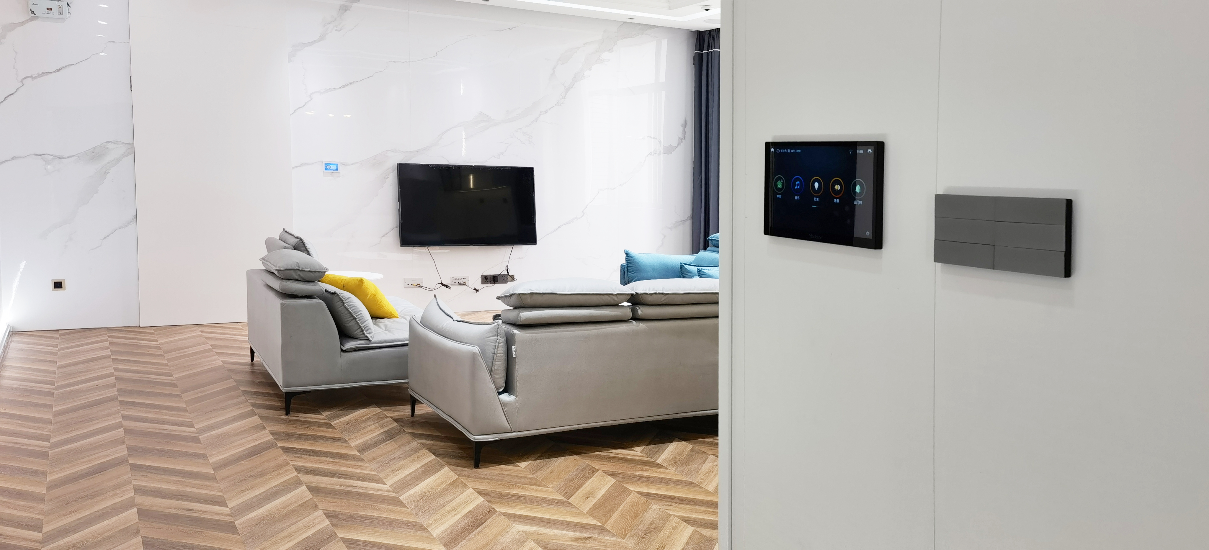 智能家居樣板房包括了客廳、臥室、廚房等功能區(qū),涵蓋智能燈光、智能窗簾、智能背景音樂、K歌娛樂系統(tǒng)、智能開關(guān)面板、智能中控屏、智能家電控制系統(tǒng)、安防報(bào)警系統(tǒng)等,客戶在參觀時(shí)可通過手機(jī)app、AI語音、面板、中控屏等多種方式進(jìn)行控制,更真實(shí)地體驗(yàn)智能居家生活。