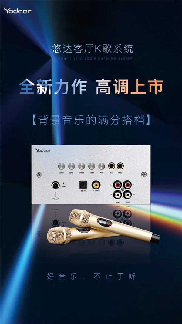悠達2019年全新力作——客廳K歌系統(tǒng)高調(diào)上市,K歌、聽音樂、觀影……多元化娛樂功能,讓家庭休閑時間更盡興!