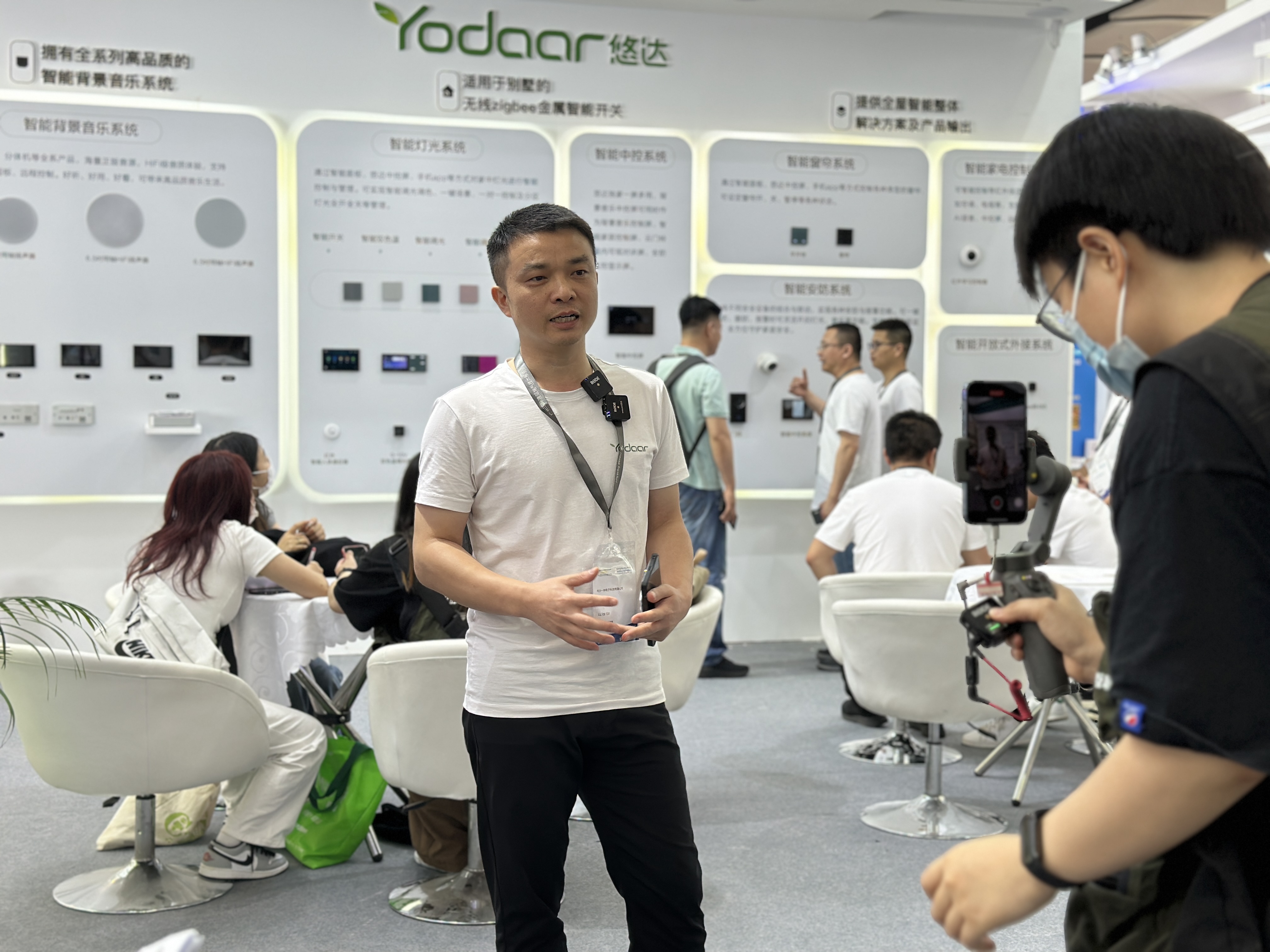 展會期間,前來參觀體驗的朋友絡繹不絕,獨具特色的產品和現場熱鬧的氛圍還吸引了許多許多專業媒體的關注,數智網、智哪兒等智能家居垂直媒體都先后對悠達進行了視頻直播與采訪。而悠達也真誠希望通過這次展會,讓越來越多人了解并感受到了音樂智能家居的魅力。
