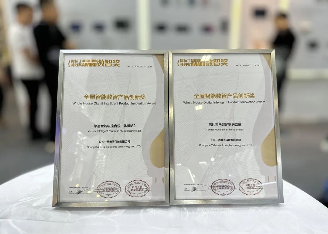 6月10日,在廣州中國進出口商品交易會展館舉行的2023第十一屆阿拉丁神燈獎·數智獎頒獎典禮暨全屋智能集成設計創新峰會上,悠達憑借音樂智能家居系統智能中控音樂一體機i82斬獲兩項全屋智能數智產品創新獎。