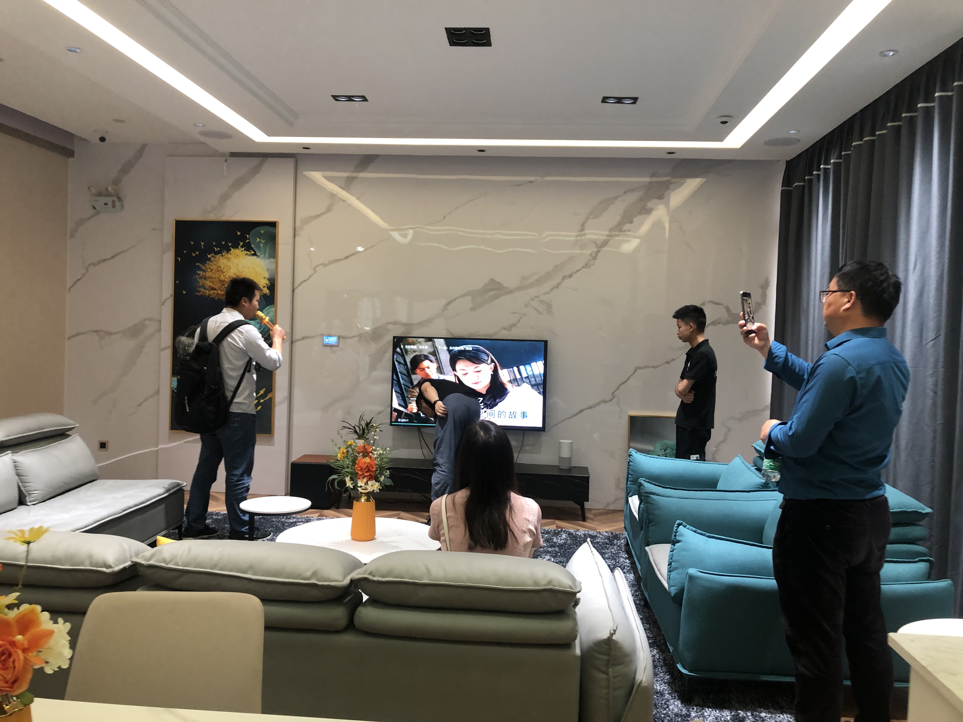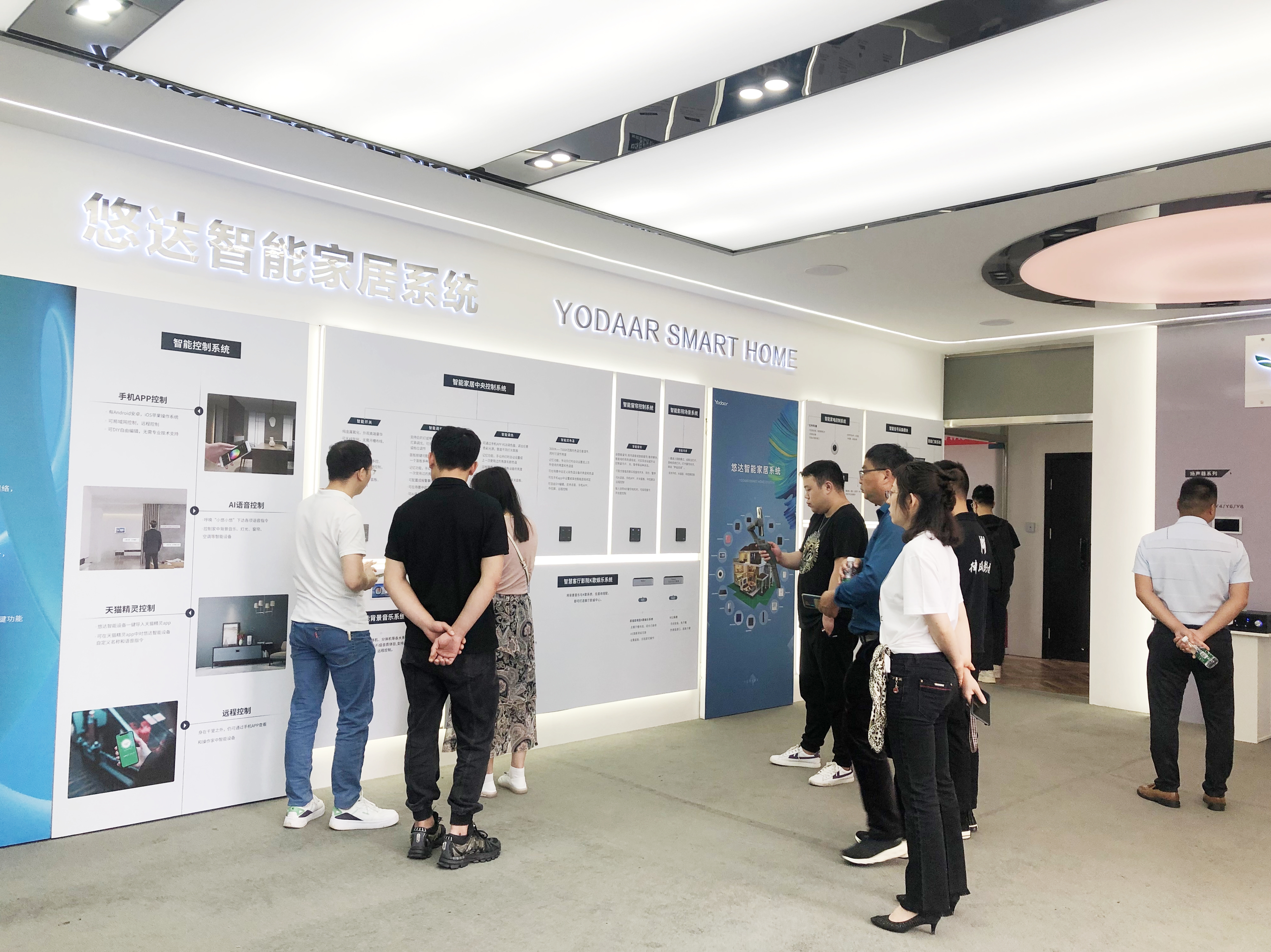 交流會結束后,悠達還帶領各位合作伙伴參觀了改造升級后的智能家居展廳,全新的展廳將智能產品和場景整合,既有品牌與產品區(qū)展示,也有實景樣板間、家庭影院可以實際感受。在專業(yè)技術人員的講解下,大家也表示出濃厚的興趣,紛紛體驗K歌系統(tǒng)、家庭影院等各類產品,在切身體驗過程中,更提高了對悠達產品的認可度。