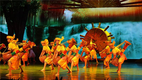 如果說白天所到之處讓人感受更多的是靜態(tài)之美,那夜晚的“瀾滄江·湄公河之夜”歌舞篝火晚會(huì),則更多展現(xiàn)了這個(gè)少數(shù)民族聚集地的特色風(fēng)情。哈尼族、布朗族、布依族……不同民族的姑娘小伙載歌載舞,為我們呈現(xiàn)了一場美輪美奐、異彩紛呈的舞臺表演。