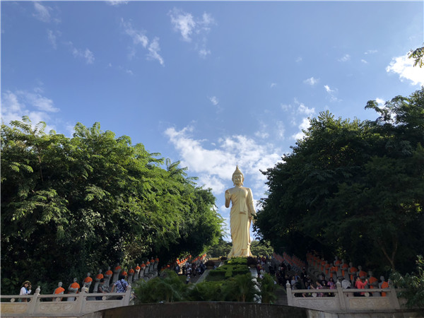 版納之行的最后一站,我們來到世界南傳佛教的文化中心——勐泐大佛寺。49米高的釋迦摩尼佛像巋然聳立,俯視蕓蕓眾生,八十羅漢托缽守護(hù)兩旁,莊嚴(yán)肅穆,此番神圣之景,讓人駐足仰望,敬畏之心便油然而生。