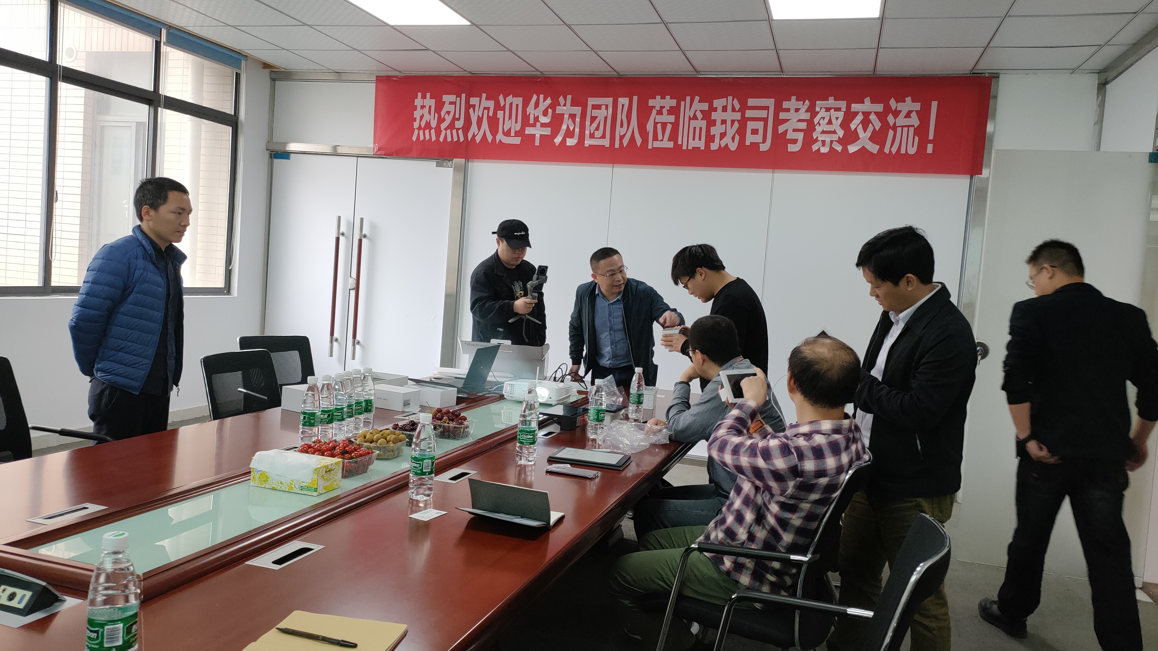 (華為智能團隊參觀了解悠達背景音樂系統)
