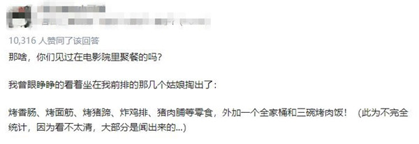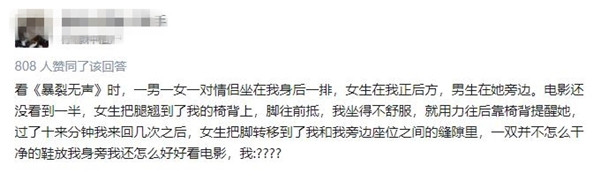 而除了這些隱患,電影院作為公共場(chǎng)所,大家總能在其中看到各種奇葩操作,很多網(wǎng)友就分享了那些年在觀影過(guò)程中的“難忘”記憶。